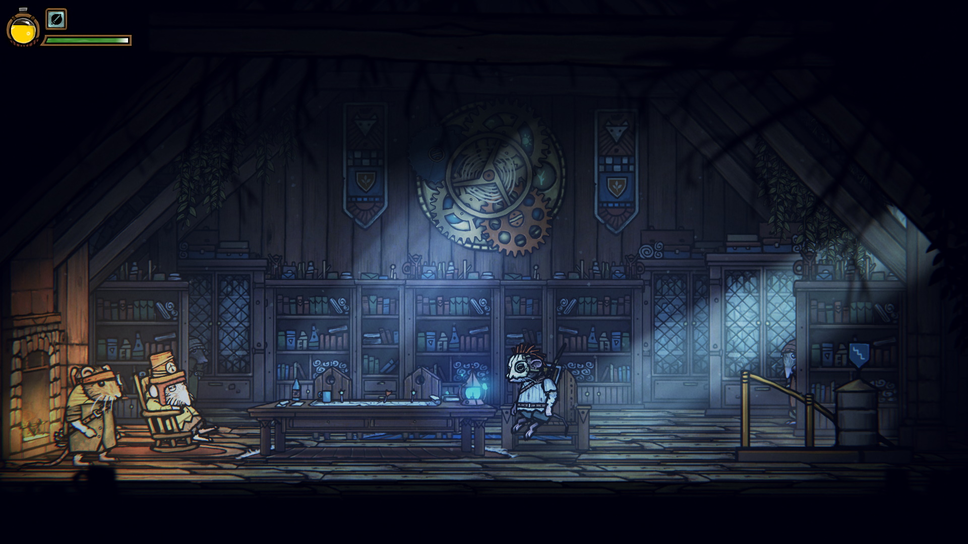 Hints of what used to be keep Tails of Iron from ever feeling too grim. Some areas are even cozy in their own way. When you’re resting in a delicately carved wooden chair in the village hall-meets-clocktower, it’s almost easy to forget there’s a war on — or it would be if you weren’t, ya’know, wearing the skull of your enemy.