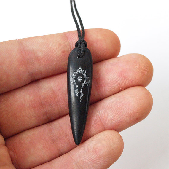A Scrimshaw Horde Pendant, made from buffalo horn. What makes them super fantastic isn't just the old school technique to make the impression, but also the way that while it has a distinctly masculine vibe, it's unisex enough to also work for a lady.