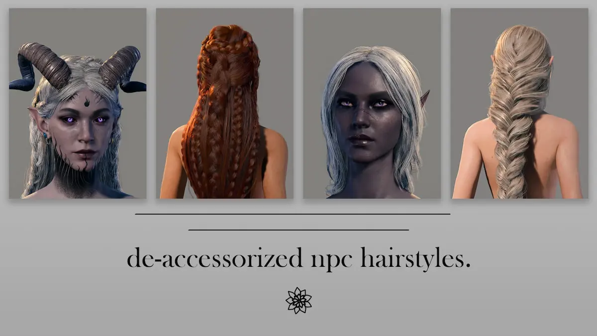 If you like Orin’s hair but don’t want the accessories that come with it, this De-Accessorized NPC Hairstyles is a better option. This adds Orin’s braid style and Umberlee’s Cleric style, and removes the ornaments so they are just simply hair.