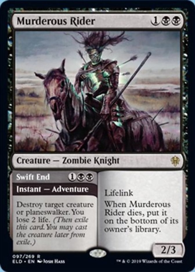 Murderous Rider will probably become a staple Standard card for the next two years. It is clearly a very powerful adventure card that will find a home in many decks that use black mana.