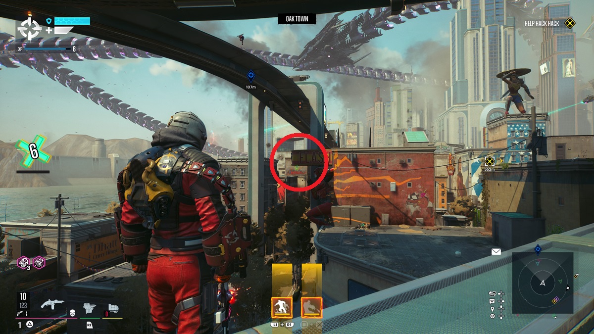 Bakerline Riddler Trophy 2: Go 315 meters south toward the bridge. Just before the bridge, you’ll see an archway for Oak Town and the Hill Drive Fire Station, an orange brick building. You can drop down to the street below by the Fire Station, and you’ll see a mural of Superman and a digital sign that says Soder Cola at an overpass. The Trophy is on the wall to the right of that sign.