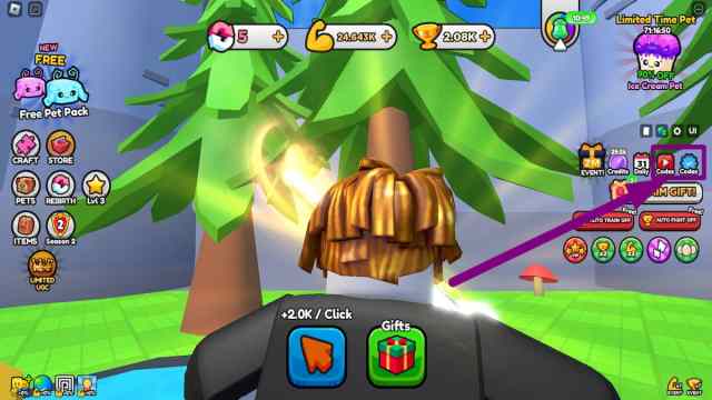 Aside from redeeming Pull a Sword codes for rewards, there are a bunch of other ways to grab them in this experience. Primarily, check the GIFT icon on the right side of the screen for various rewards that you get just for staying in the game. Remember to collect Daily rewards and use free Spins or grab a free pet pack in the top-left corner of your screen. For more potential goodies, visit the developer’s social media channels (linked above) to check for new giveaways.