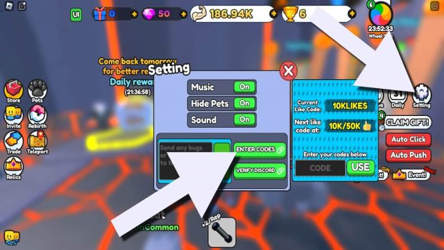 To redeem Sisyphus Simulator codes, follow the steps below: