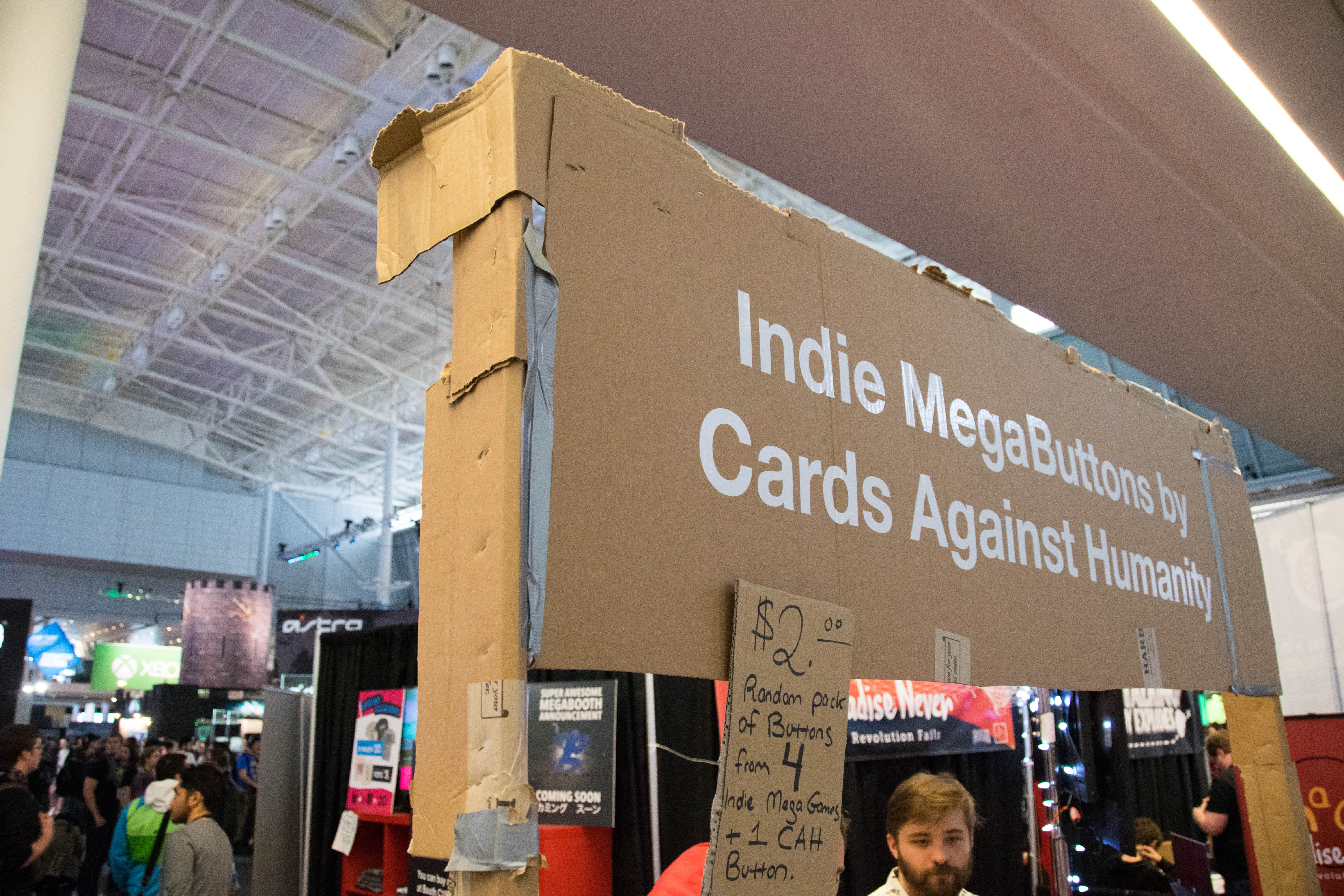 The Cards Against Humanity booth wasn't easy to find, but it was worth the search. Their booth consisted of 2x4s, cardboard scraps, some duct tape, and their cards spread all over the table. Also featured at this booth: game developers were posted every day to sign cards from their game and hand out swag. This was the most low budget booth in the entire convention center, but this made it the most hilarious.