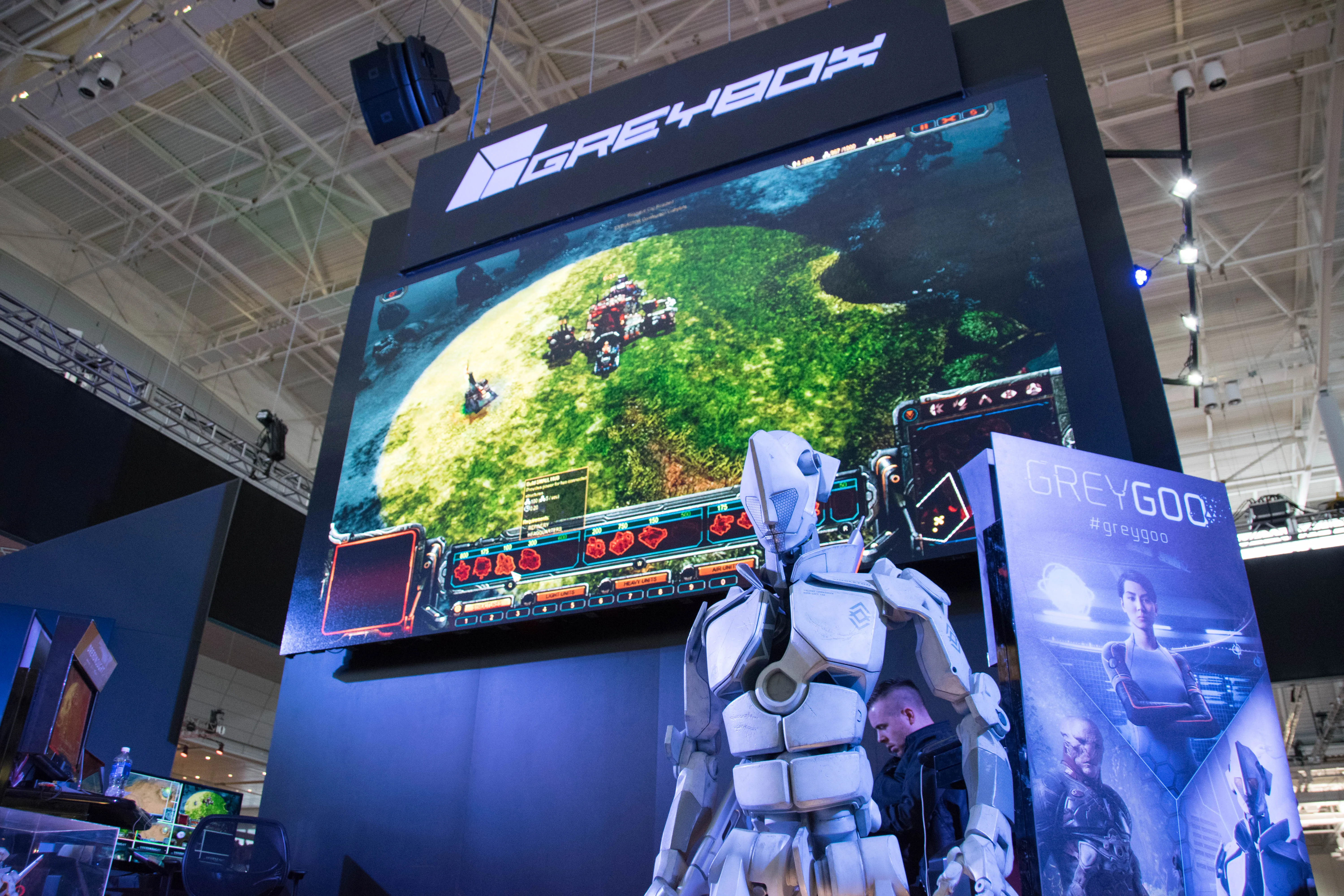 Grey Box had a huge booth this year for their game Grey Goo. They had their booth built around a center stage to demo their new RTS game. It was very easy to see their booth from a distance due to the glow that it emitted. And statues!