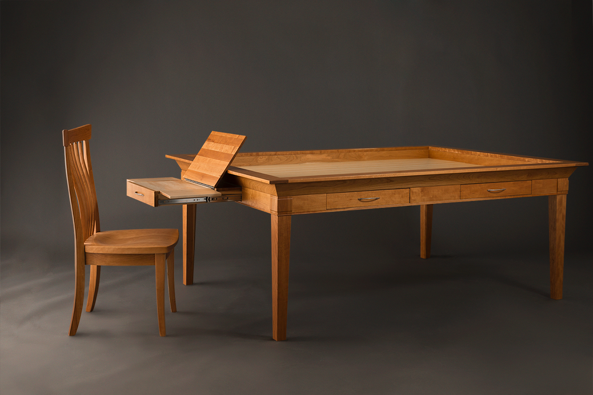 If you're really keen on spending big bucks on a gaming table, you can always find a furniture designer to custom-make one for you. The above design is by Ryan Schlaefer Fine Furniture, and was custom built for a customer.