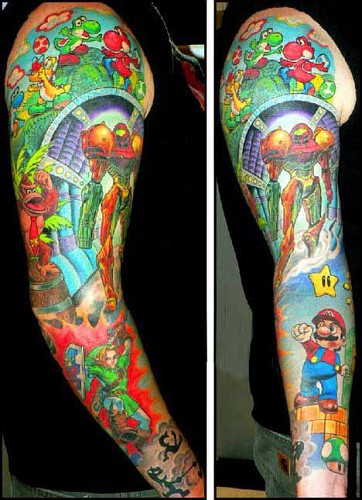 Taking Mario one step further, this guy/girl decided not to stop there. There's Donkey Kong, Samus from Metroid, Link from Legend of Zelda, and more on this incredible Nintendo sleeve.