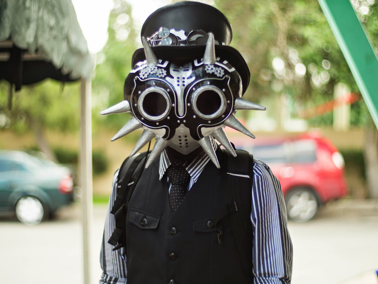 "You've met with a terrible fate..." Combining creepy with just the right dose of salesman-y, this costume is crazy good. I wonder how tiring carrying around all of those masks would be at a con though...