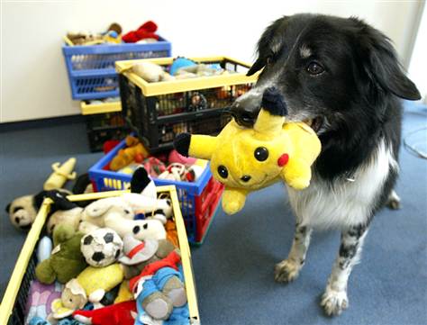 This Border Collie knows his Pokemon, and while he may not be a cat, he sure is a fan of Pikachu.