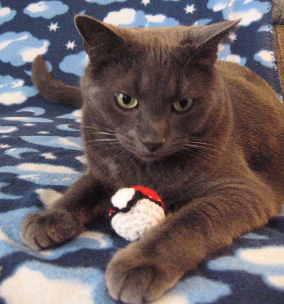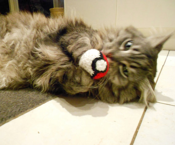 Actually, this cat is a model for it's very own catnip filled Pokeball. You can find your own at the SalvagedExpression Etsy page.
