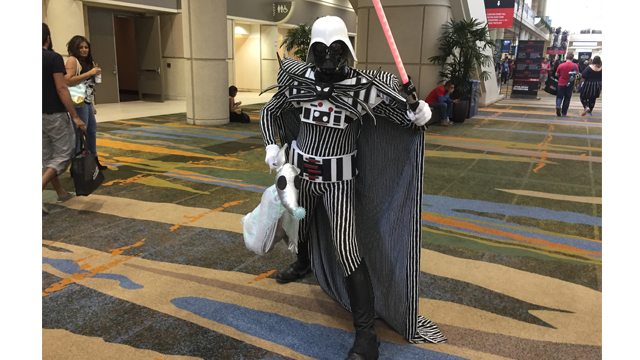 Cookie Monster is kind of dastardly in his own right, but mixing him with Darth Vader is an unexpected combination that makes for an amazingly "evil" cosplay. The furry blue cookie-loving character from Sesame Street dons Darth Vader's attire and trades kills for cookies. Cruising around the convention, this cosplay is surprisingly intimidating. Cookies are obviously the best motivation, even for masters of the dark side of the Force.