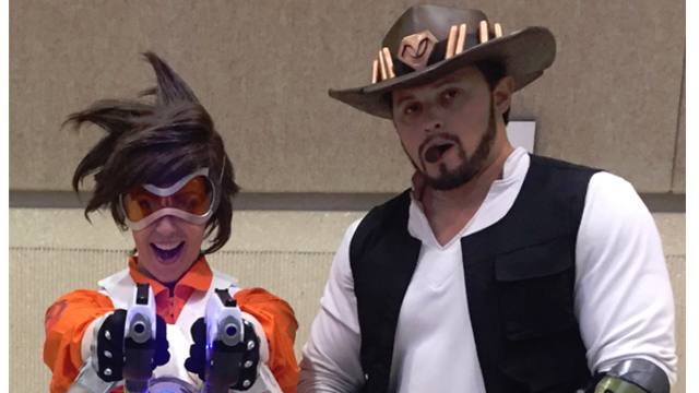 This is an epic mashup of two amazing video games. Tracer dons an X-wing suit as she prepares for combat while McCree takes on the duds of Han Solo, the roguish outlaw turned roguish cowboy. Tracer's normal attire lends itself to being an X-wing pilot; with goggles and twin pistols, she is ready to fight.