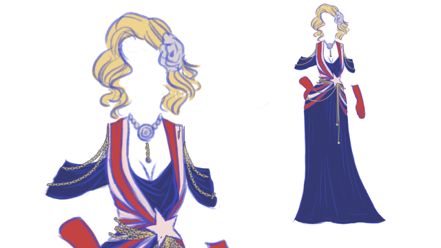 While I'm not sure that the puritanical Steve Rogers would be caught in something with such a daring neckline, this Captain America look still has the same American spirit as its namesake, while bringing a bit of the evening gown elegance.