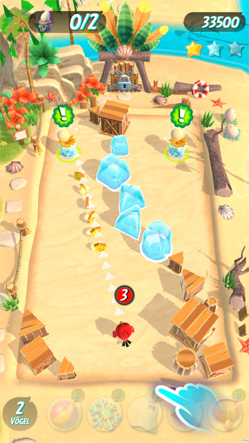 Instead of using a slingshot, the bird simply propels through an area from a top down perspective. As soon as it hits the tower or any other target on the field it automatically bounces back into the opposite direction and hits the other one, just like in Pinball.