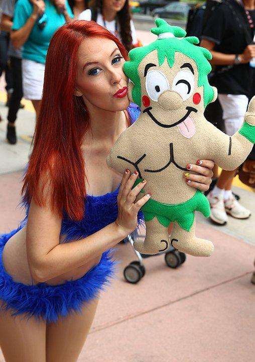 While I give Meg Turney props for finding something pretty outside the usual cosplay box with her rendition of early 90s arcade hit Joe and Mac, I can't say that her monster fur bikini nor the use of her own hair count very high towards cosplay queendom. That is a pretty cute doll though.