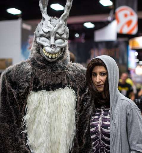 Donnie Darko and Frank made an appearance sans murder and mayhem on the SDCC floor. I still can't look that bunny mask full in the face for too long without being creeped out...