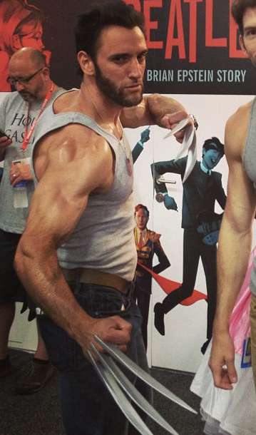 This guy sees your manly arms nameless Logan cosplayer, and raises you one bare-chested salute on the manliness scale. Time to wrestle it out, boys.