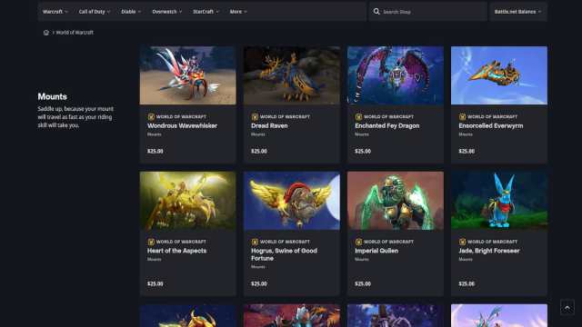 Mounts or Pets from the Battle.net Shop