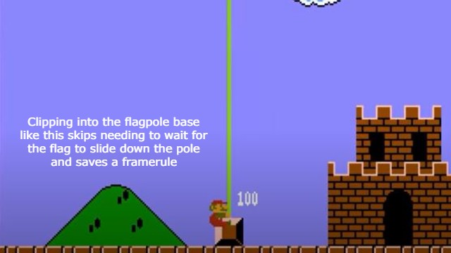 - 8-1 features what is known as a fast acceleration on the first frame of the level. Niftski had to hit left on the first frame of the level, then jump and hit right on the third frame, and release jump on the fourth frame. These are all frame-perfect inputs that allow Mario to reach running speed quicker and must be started on the first frame possible, with no cue as to when that first level frame is coming. Doing this, plus the flagpole glitch at the end, allows him to catch the earliest possible framerule with zero frames to spare.