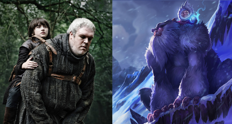 Bran and Hodor and Wilhem and Nunu share a similar relationship. Bran and Hodor are friends, which is the only reason that Hodor would allow Bran the privelege of riding on his back. Similarly, Wilhem and the yeti Nunu have mutual respect as the basis of their partnership.