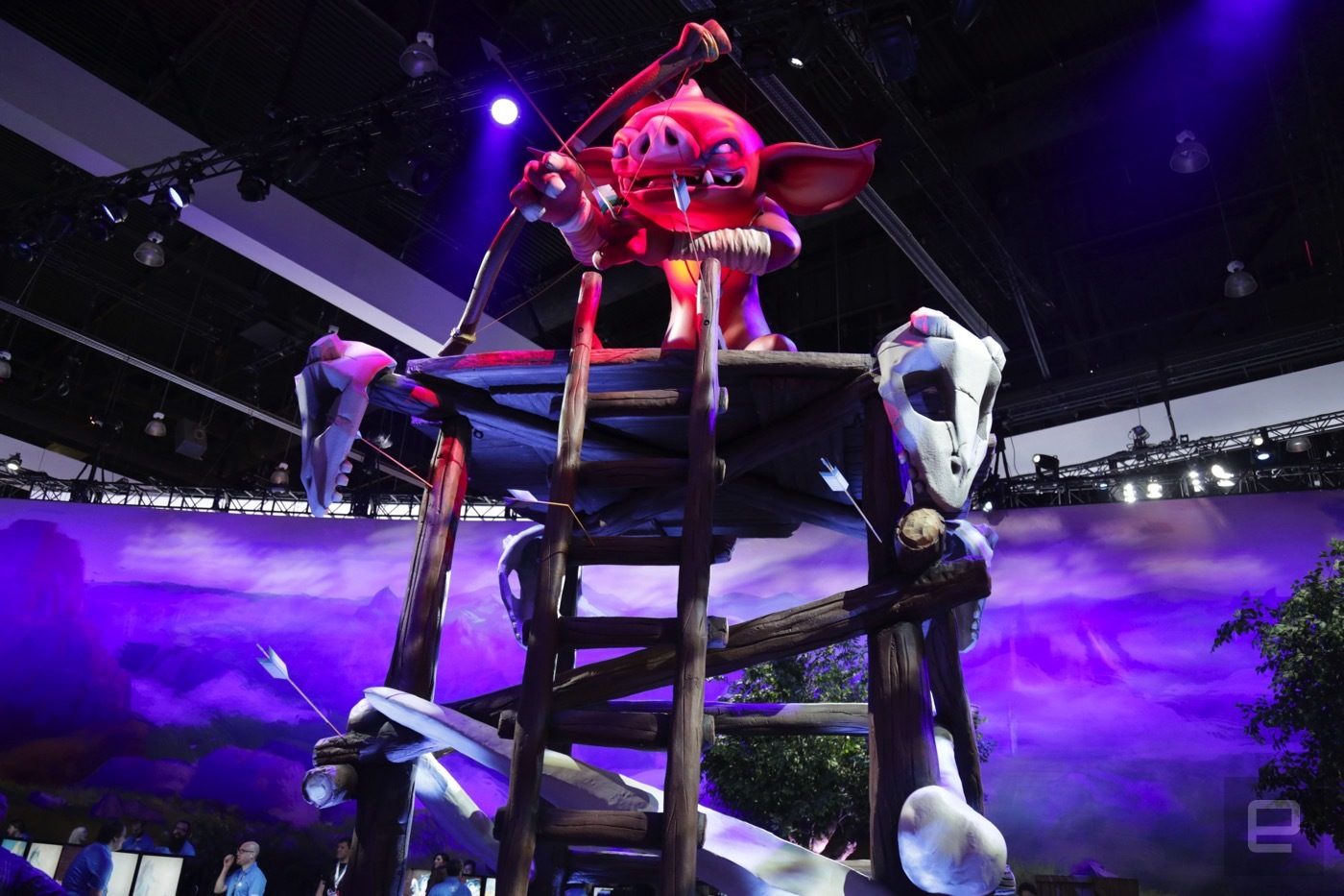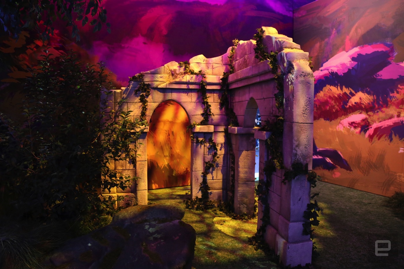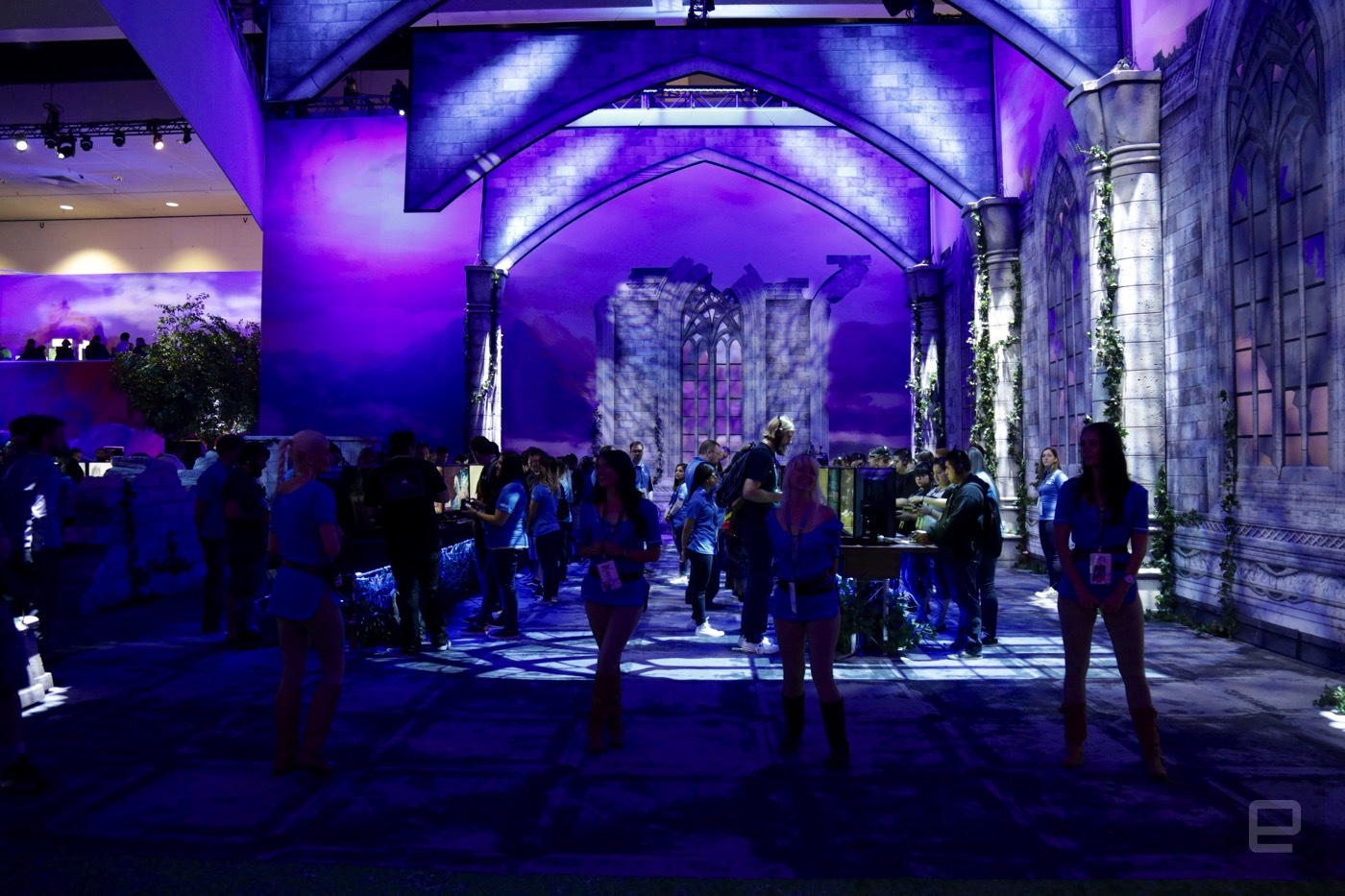 In the middle of it all were the screens set up with the game demo. Look at these lucky humans. Also: are those castle ruins?