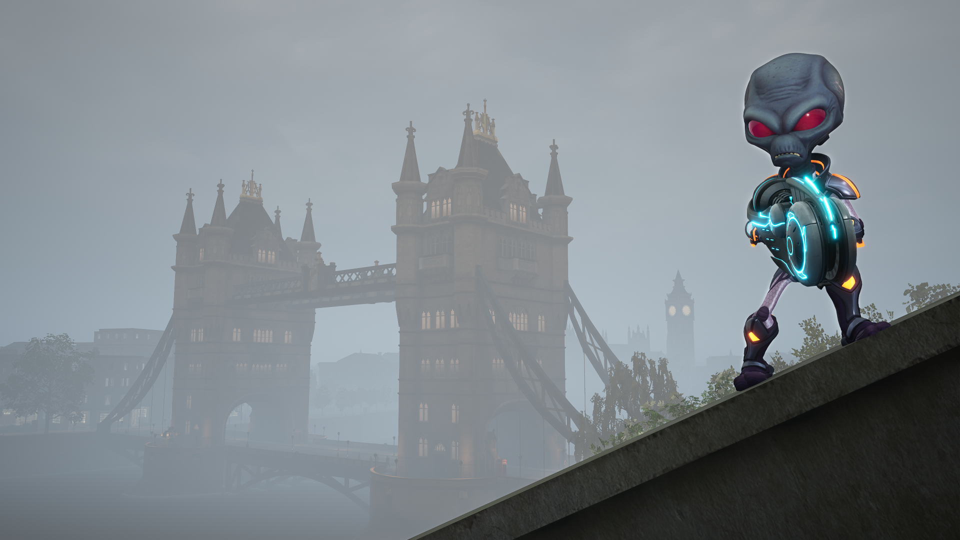 I was able to explore the game’s first two locations, Bay City and Albion. Bay City is a parody of San Francisco set in 1969 overrun by hippies, whereas Albion is Destroy All Humans! 2‘s version of London. These cities are instantly recognizable and make for great playgrounds for alien destruction. Wherever you go, there are always humans going about their day — until they see Crypto zooming around causing absolute mayhem.