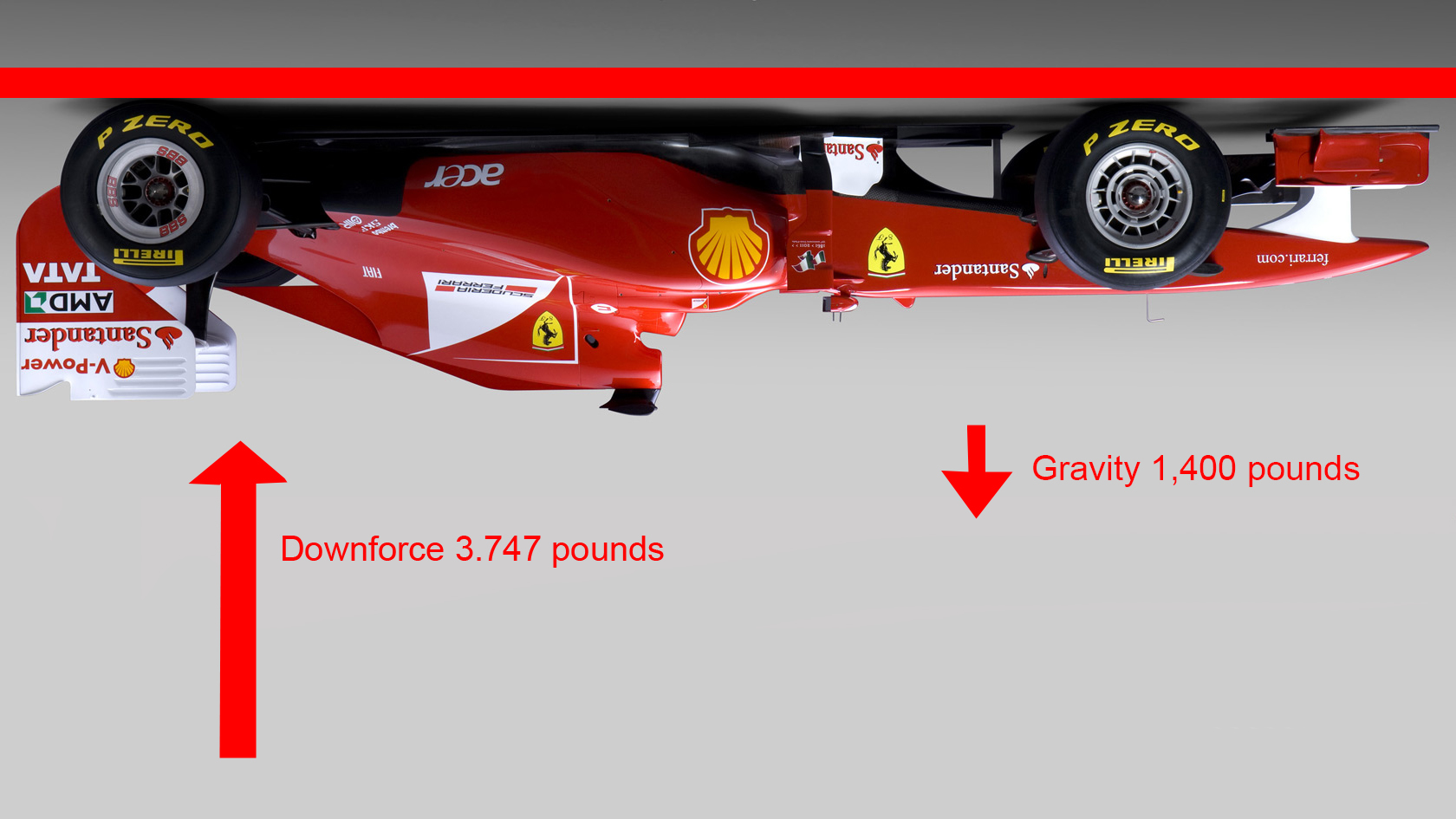 Imagine an F1 car driving upside down on the ceiling of a tunnel, as the image below depicts: