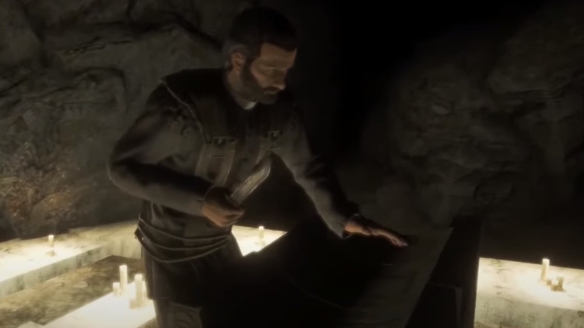 Before entering an underwater chamber, you are treated to a couple of flashbacks of a man in a sacrificial chamber holding a knife to his wrist while others sat on their knees before him. It was believed that these rituals were done to communicate with the Dark God Ug-Qualtoth. According to Fallout 3, the artifacts tied to the company would turn sacrifices into feral ghouls, raising the question of whether ghouls were solely the result of radiation or if there’s a supernatural twist to these terrifying beings.
