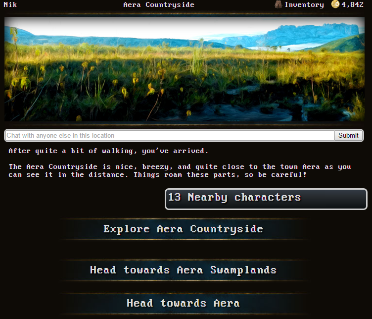 You start by exiting the town and exploring the surrounding wilderness. Here is where you will face your first enemy type the Troll. As you explore more and more, you will begin to find new locations to explore. As you venture further away from the town, the creatures you encounter will be stronger. With more difficult enemies comes greater rewards.