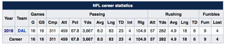 Dak Prescott’s Full 2016-17 Stat Line:
