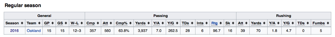 Derek Carr’s Full 2016-17 Stat Line: