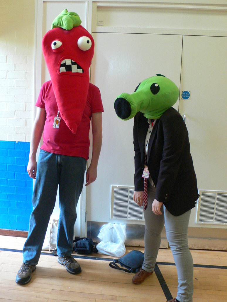This photo taken by KaniKaniza at AmeCon 2012 of cosplayers ChiDan as the Jalapeño and soul-of-the-wild as the Peashooter.