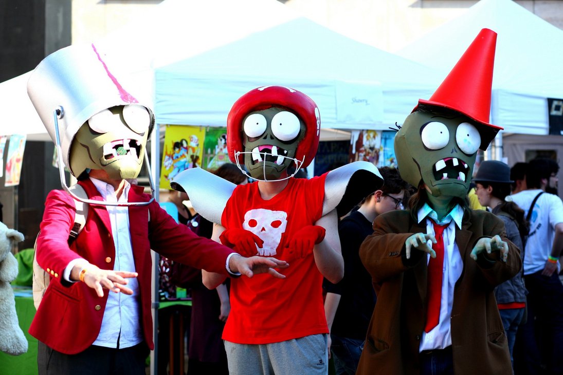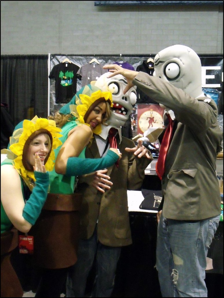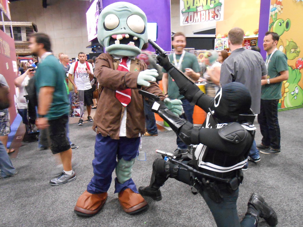 This photo was taken at PAX Prime 2012 of cosplayer lelental (dressed as Emilia from Dance Central 2) with some PopCap Zombies.