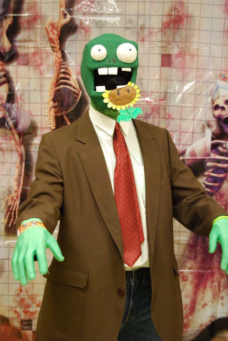 This is the official mascot of Plants vs Zombies here at E3 in 2013 in a photo with IDiivil-Official.