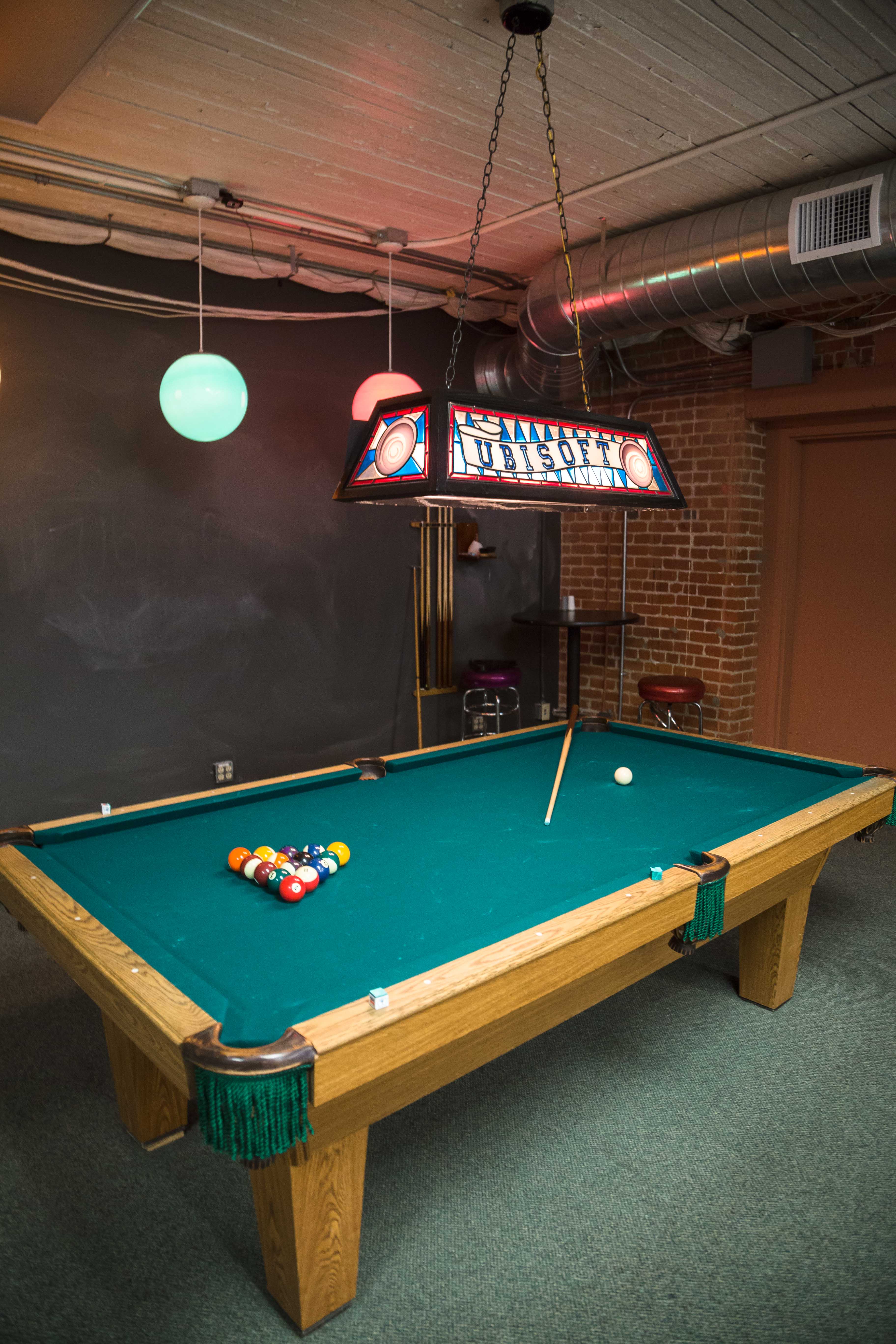 Love, love, love the personalized pool table light. As well as the green fringe on the edge of that table. Very, very cool Ubisoft San Francisco!