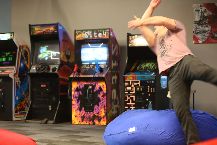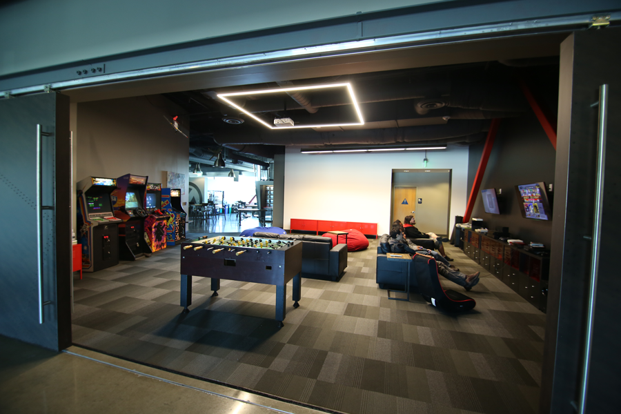 I'm really liking this trend of arcade rooms in major studios. Kick back with a bit of Pac-Man's Arcade Party between long crunch times? Sounds pretty swell.