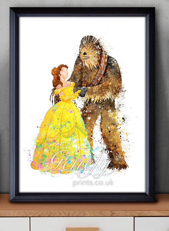 Disney Star Wars Princess Belle Beauty and the Beast (Chewbacca) Watercolor Poster Print