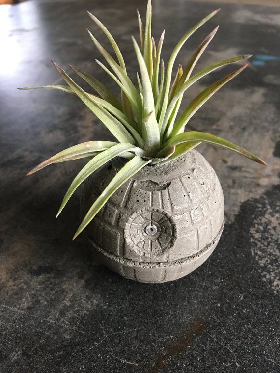 An awesome little planter you can place inside or outside (it's made of concrete), this could also make a cool desk piece or paper weight. It is 2 1/2" in radius, while the air plant adds an additional 1 - 3" in height.