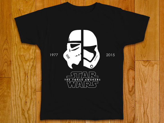 An awesome T-shirt featuring the stormtroopers from both the original Star Wars movies and Star Wars: Episode VII. Whether your giftee would like to show his loyalty to the series or wants to wear an example of how they messed up (or if they might just want a cool shirt), this design should suffice. You can get this Tee in many different sizes.