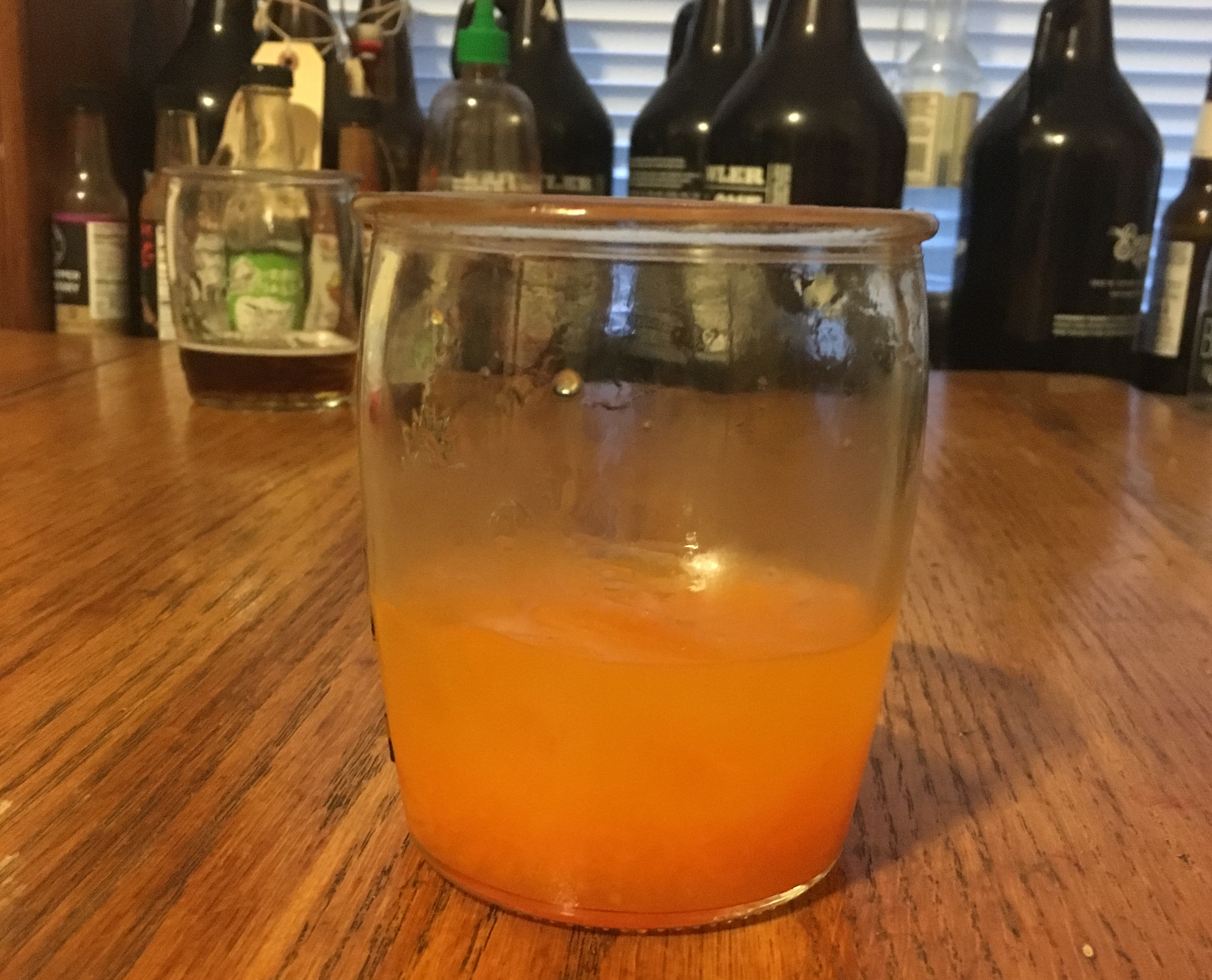 To begin, add a chopped orange pepper to a blender, along with a heaping tablespoon of sugar and 2 shots (3 oz) of lemon juice. Pulse a few times depending on how pulpy you want the final drink to be. Once you've done that, throw a handful of ice into a rocks glass and add 1.5 ounces of your mixture. Add in 1.5 oz of tequila, stir, and enjoy. This is a delicious summery drink. It's not too sweet, and it's incredibly crisp and refreshing.