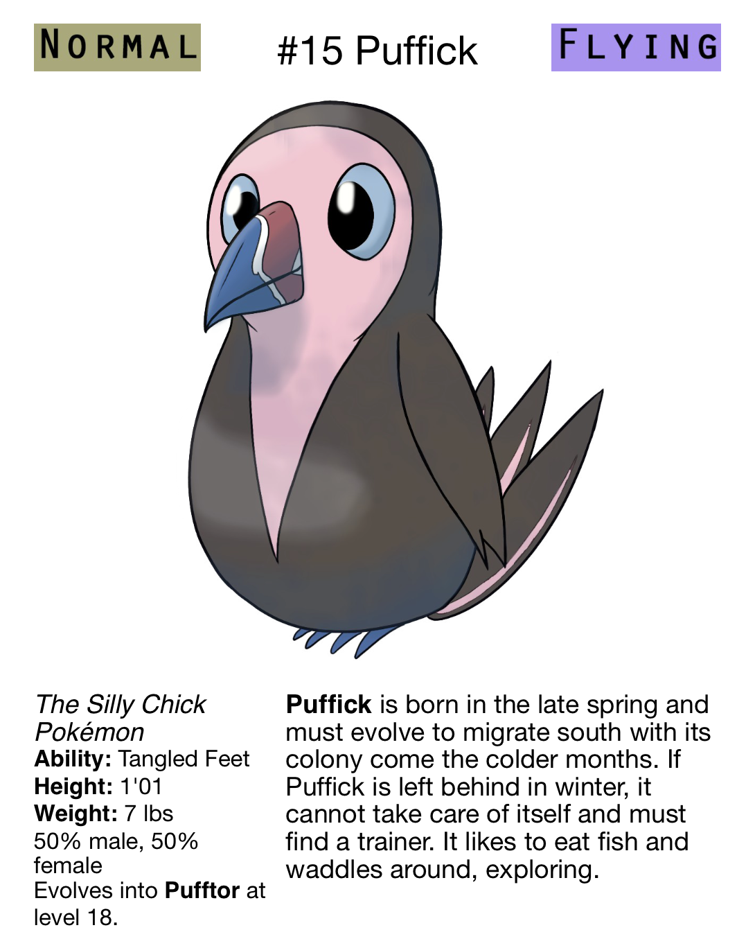 Though there is not much information available yet to answer all of those questions (come on Serebii!), I would like to give you some entertaining food for thought. Below are some Fakémon that were created by Elena Hartley and Julia Utset for a winter term project at Oberlin College.  (They were kind enough to let me post their work!  Thanks you two!)