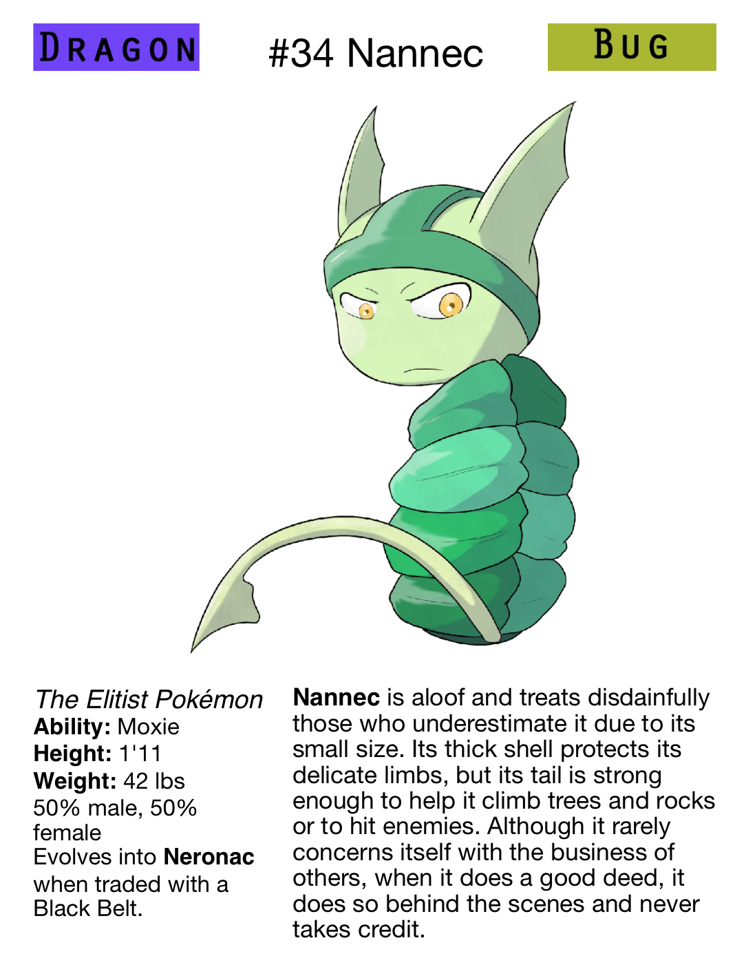 Oh, and this is a Nannec – the first gym leader’s Fakémon and its evolution: