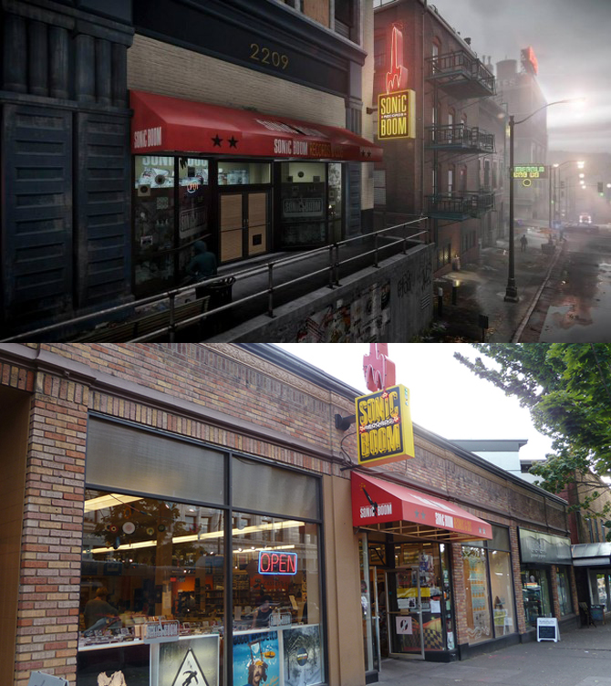 Los Angeles has Amoeba, Seattle has Sonic Boom. A huge record store located in Ballard, Sonic Boom has pretty much every record you could think of and hosts a number of in-store performances. The Sonic Boom of the Infamous universe is almost identical to the real thing - right down the the address and open sign.
