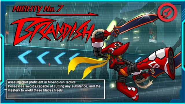 Mighty No. 7 is powerless against Mic’s power. Brand applies hit and run tactics in his fight. He’ll often run towards you to slice you up and or perform his blade whirlwind. He’ll also use dive kicks to attack from an angle. The key to minimizing damage is to stay moving and stay aware of his positioning. When low on life, he’ll perform a series dashing attacks from multiple angles. These attacks are preceded by a blue light in the direction he’ll slash and thankfully you can dash away from danger. Show him you don’t bring a sword to a gunfight.