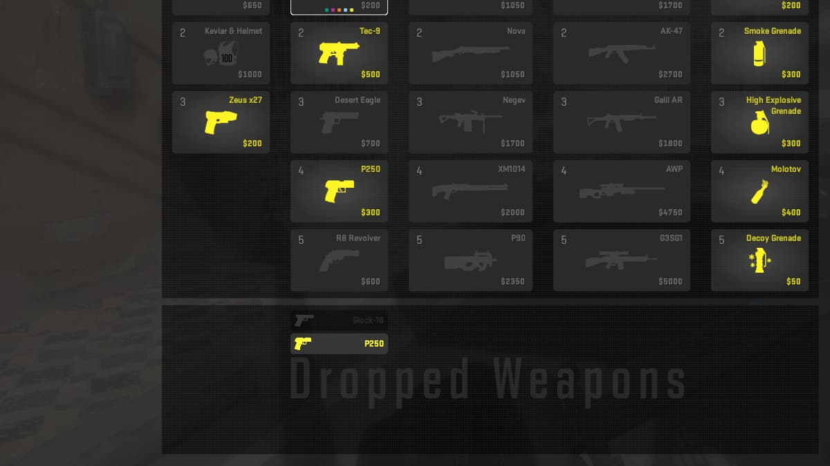 All of these dialogue options should now be gone. When a player drops a weapon in the freeze time (buy time) and it’s not picked up by anyone, it appears in everyone’s buy menu, under the weapons you can buy.