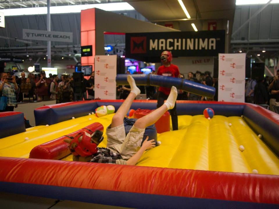 So this super official booth for (I believe) the lobbying group for games including inflatable jousting all weekend. At some point, horsemasks became involved.