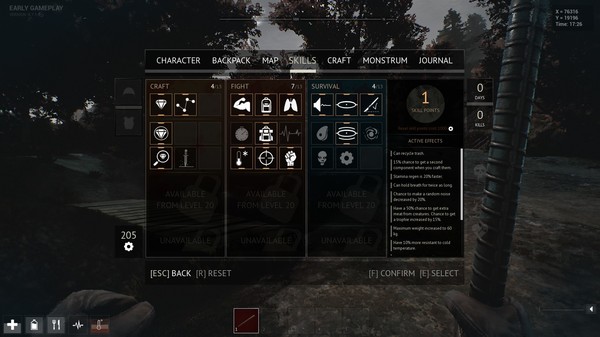 Along with the many new features introduced to the game, there has been a considerable amount of balancing and visual upgrades done. As previously stated, the thirst, hunger and stress mechanics are now fully implemented and are far more balanced than they were in the earlier builds.