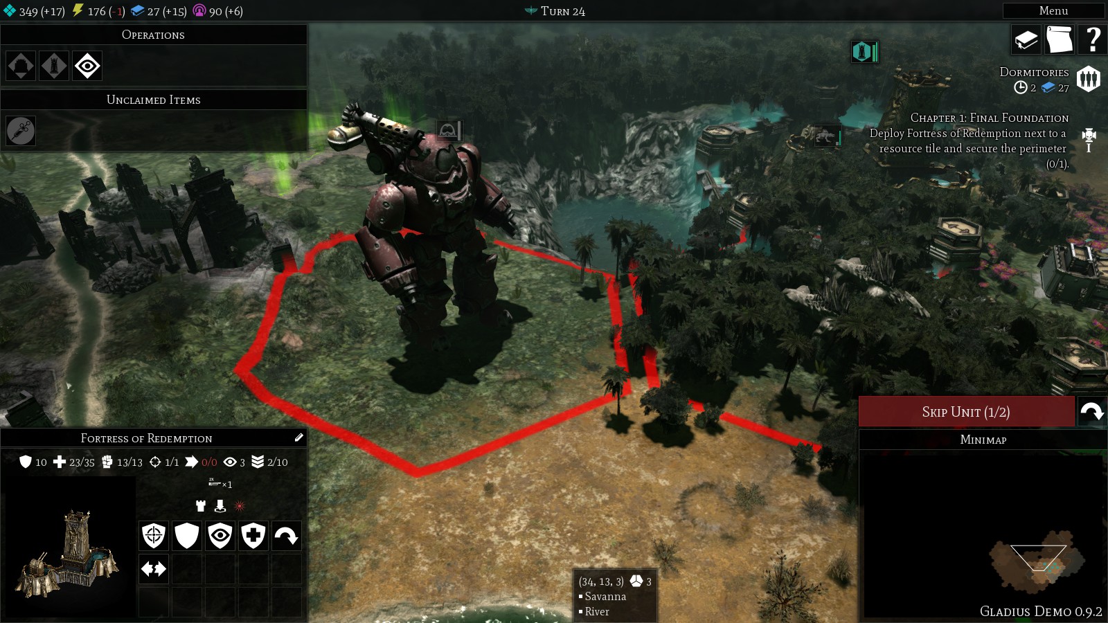 At its core, Gladius is complex like a 4X game should be, but while still being manageable. A helpful red button in the corner reminds you of what can be done each turn so you don’t accidentally waste any time without researching, requisitioning new units, claiming tiles, and so on. However, there are still lots of ways to mess yourself up if you don’t figure out the strategy.