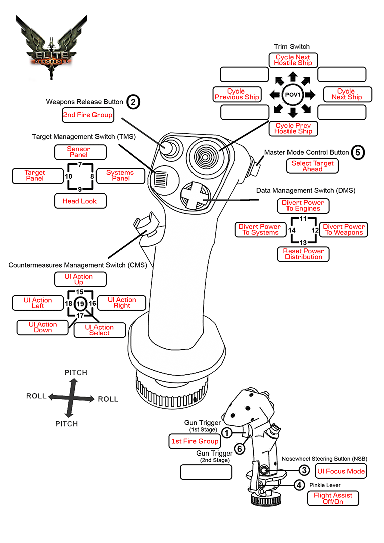 Thrustmaster T.16000M FCS – This HOTAS was designed especially for Elite: Dangerous, although it’s not as popular as the X52 because of some design and button placement issues. It is very strange that the Thrustmaster T.16000M FCS Flight Pack was not designed to look like HOTAS in ED ships, especially considering its target market.