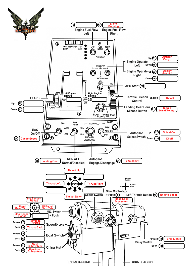 It seems that also the system’s visual similarity to ED’s in-game HOTAS system (the one visible in every ship cockpits) plays a vital role in the X52 being the best option for ED.